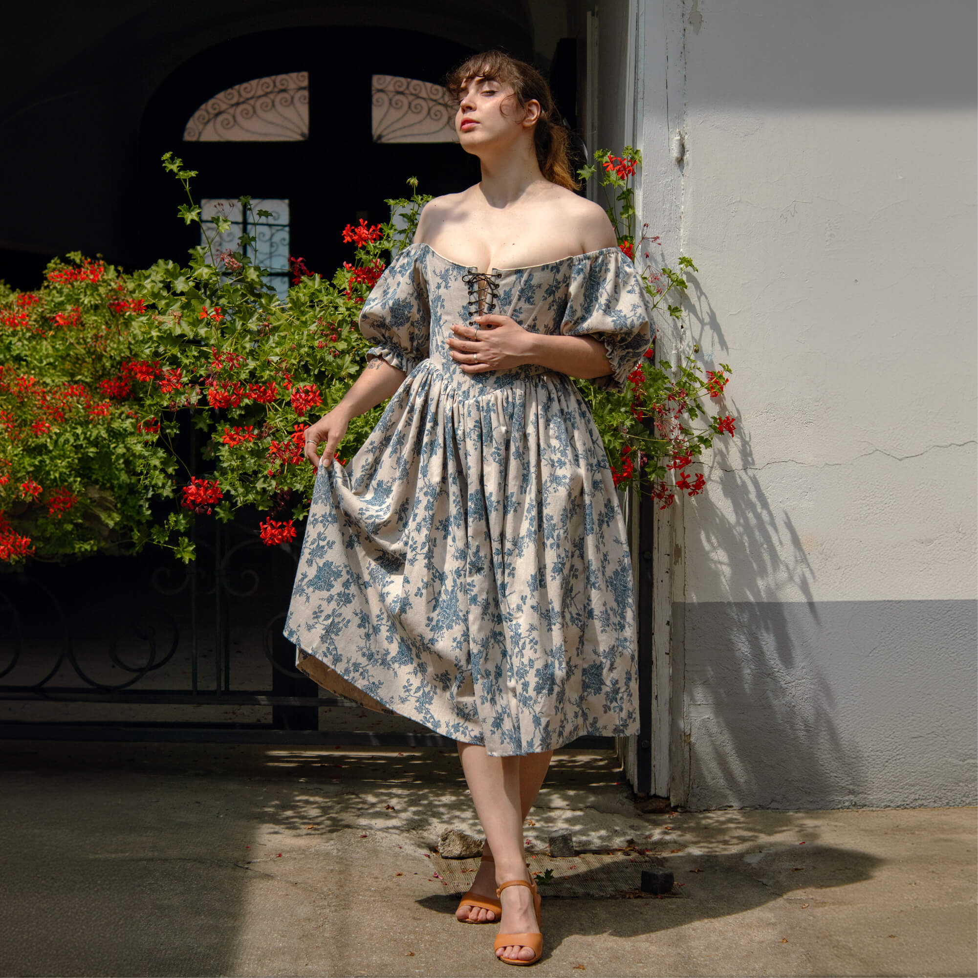 Made to measure Florence Corset dress is perfect for proms, wedding receptions, or any other special occasions. This style of dress has pockets. The skirt length is 75 cm.